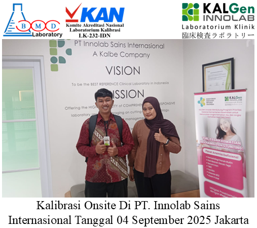 Pada tanggal 04 September 2025, BMD Laboratory kembali menunjukkan komitmennya dalam menjaga kualitas dan akurasi pengukuran dengan melaksanakan kegiatan kalibrasi di PT. Innolab Sains Internasional, sebuah perusahaan yang berlokasi strategis di Jl. Jenderal Ahmad Yani No.2, Kayu Putih, Kec. Pulo Gadung, Kota Jakarta Timur, Daerah Khusus Ibukota Jakarta 13210.