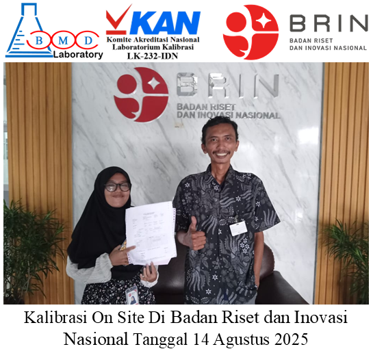 Pada tanggal 14 Agustus 2025, BMD Laboratory kembali menunjukkan komitmennya dalam menjaga kualitas dan akurasi pengukuran dengan melaksanakan kegiatan kalibrasi di Badan Riset dan Inovasi Nasional, sebuah perusahaan yang berlokasi strategis di Gedung Manajemen (Gedung 720) Kawasan Sains dan Teknologi B.J. HabibieJl. Raya Puspiptek 60, Setu, Tangerang Selatan, Banten, 15314.