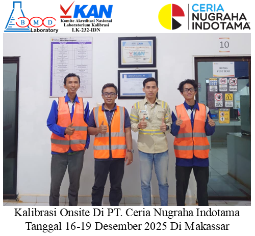 Pada tanggal 16-19 Desember 2025, BMD Laboratory kembali menunjukkan komitmennya dalam menjaga kualitas dan akurasi pengukuran dengan melaksanakan kegiatan kalibrasi di PT. Ceria Nugraha Indotama, sebuah perusahaan yang berlokasi strategis di Jl. Kima 12 Kav. N-1a Kawasan Industri Makassar, Makassar 90245.