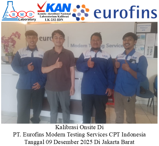 Pada tanggal 09 Desember 2025, BMD Laboratory kembali menunjukkan komitmennya dalam menjaga kualitas dan akurasi pengukuran dengan melaksanakan kegiatan kalibrasi di PT. Eurofins Modern Testing Services CPT Indonesia, sebuah perusahaan yang berlokasi strategis di City Resort Residence Rukan Malibu Blok H No. 25-27 Cengkareng, Jakarta Barat DKI Jakarta 11730.