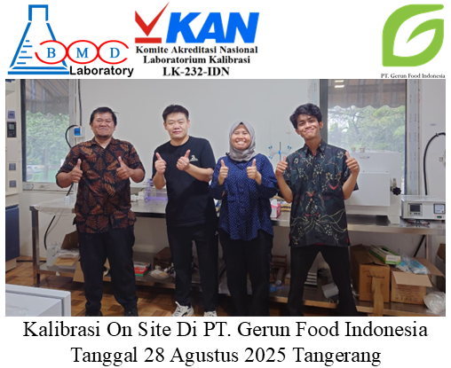 Pada tanggal 28 Agustus 2025, BMD Laboratory kembali menunjukkan komitmennya dalam menjaga kualitas dan akurasi pengukuran dengan melaksanakan kegiatan kalibrasi di PT. Gerun Food Indonesia, sebuah perusahaan yang berlokasi strategis di Jl. Pemda Tigaraksa Kap. Bojong Kel. Bojong Kec. Cikupa Tangerang Banten 15710.