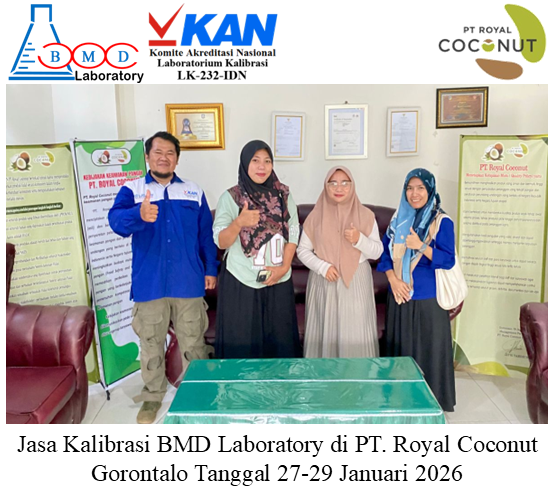 Pada tanggal 27-29 Januari 2026, BMD Laboratory kembali menunjukkan komitmennya dalam menjaga kualitas dan akurasi pengukuran dengan melaksanakan kegiatan kalibrasi di PT. Royal Coconut Gorontalo , sebuah perusahaan yang berlokasi strategis di Jl. Amal Modjo, Ombulo, Kec. Limboto Bar, Kabupaten Gorontalo, Gorontalo 96218.